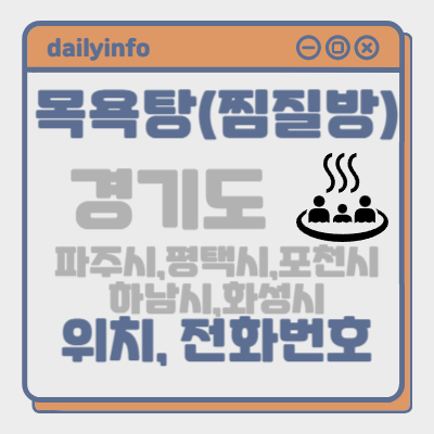 오늘은 경기도[파주시,평택시,포천시,하남시,화성시] 지역 목욕탕(찜질방) 위치 및 전화번호에 대해서 알아보겠습니다.