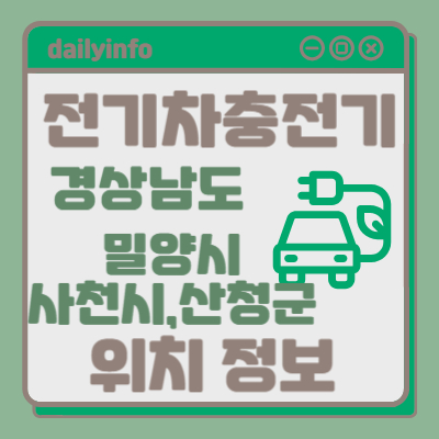 오늘은 경남(밀양시,사천시,산청군) 전기차 충전기 위치정보 에 대해서 알아보겠습니다.